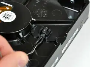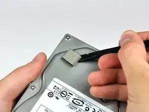 Снимите два винта T8 Torx, крепящих монтажный кронштейн жёсткого диска к самому диску.