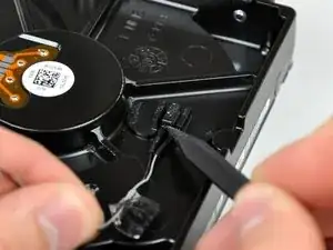Снимите два штифта T8 Torx с контактной стороны жёсткого диска.