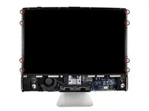 Снимите восемь винтов T8 Torx, 12 мм, крепящих панель дисплея к задней панели.