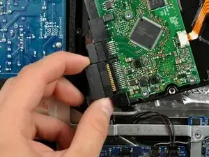 Жёсткий диск всё ещё подключён через кабели SATA.