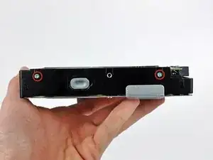 Снимите два винта Torx T10, которые крепят верхнюю скобу жесткого диска к внешнему корпусу.