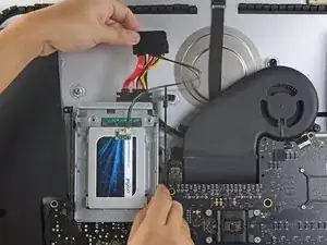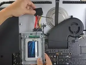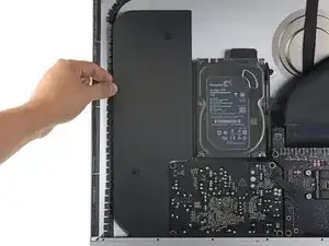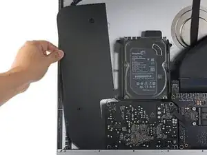 Извлеките жесткий диск и левый кронштейн из iMac.