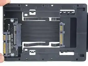 Совместите разъемы SSD с гнёздами металлического корпуса.
