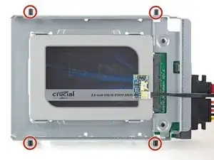Используйте крестовую отвертку, чтобы установить четыре серебристых винта (по два с каждой стороны) вдоль краёв SSD, чтобы закрепить его в корпусе.