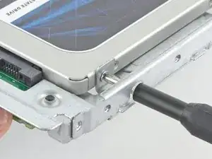 Используйте отвертку T8, чтобы установить монтажные штифты с прежнего жёсткого диска на боковые стороны корпуса.