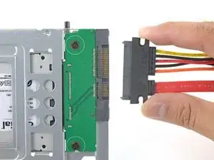 Тяните кабель SATA combo прямо вверх, чтобы отсоединить его от накопителя.