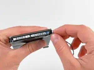 Удалите кусок ленты, закрывающий термодатчик, прикреплённый к кромке жёсткого диска.