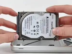 Удалите по два винта Torx T6 с каждой стороны жесткого диска (всего четыре винта).