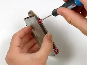 Удалите два винта с шестигранной головкой на 1.5 мм длиной 4.2 мм в верхних углах верхней корпуса (всего два).