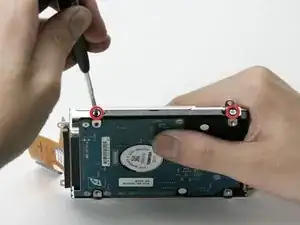 Снимите по два серебристых винта Phillips с каждой стороны жёсткого диска (всего четыре винта).