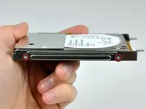 Снимите два винта Phillips с левой стороны жёсткого диска.
