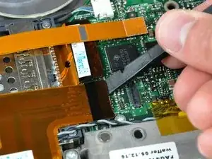 Используйте плоский конец лопатки, чтобы приподнять соединитель шлейфа жесткого диска с материнской платы.
