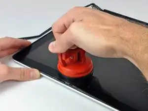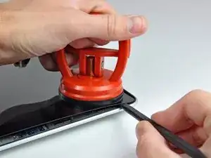 Прикрепите присоску рядом с верхним краем стеклянной панели дисплея и используйте её, чтобы подтянуть стеклянную панель вверх от дисплея.