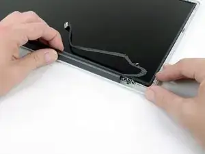 Продолжайте снимать уплотнитель экрана по правой стороне сборки экрана.