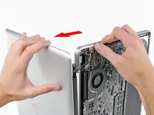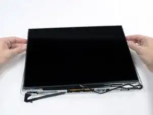 Схватите верхние углы ЖК-дисплея и поверните его вверх, слегка вынимая из дисплея.