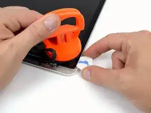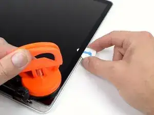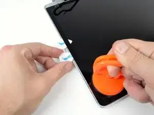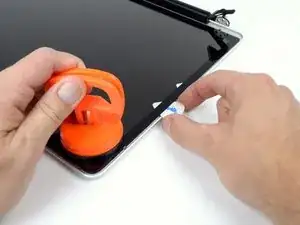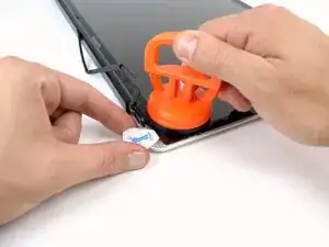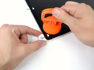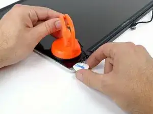 Когда панель достаточно нагрета, закрепите мощную присоску возле нижнего правого угла стекла экрана.