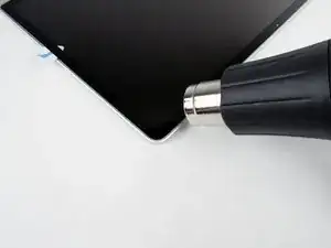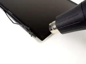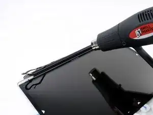 На следующих шагах вы будете использовать тепловой фен, чтобы размягчить клей, фиксирующий внешнюю чёрную рамку на нижней стороне передней стеклянной панели к экрану.