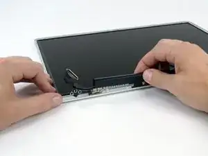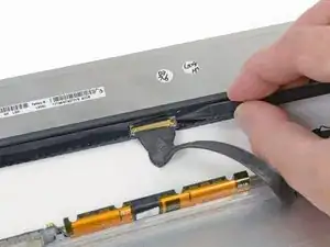 Отклейте кусочек ленты, закрывающий разъём кабеля передачи данных дисплея, от края, ближайшего к ЖК-дисплею.