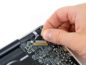 Потяните кабель передачи данных дисплея прямо от его гнезда на ЖК-дисплее.