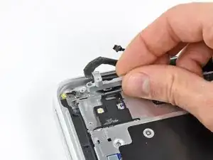 Удалите последний оставшийся винт T6 Torx, фиксирующий дисплей к верхней части корпуса.