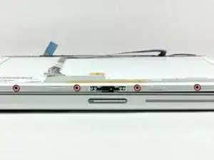 Уберите четыре маленьких черных винта с крестообразной головкой вдоль верхнего края дисплея.