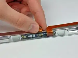 Отключите кабель iSight от платы логики, сдвинув кабель влево и вынув его из разъёма.