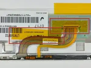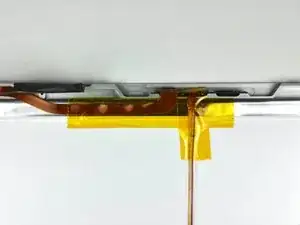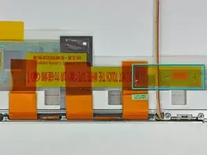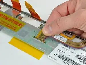 Снимите две полоски ленты, фиксирующие кабель данных дисплея к ЖК-дисплею.