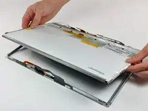 Поднимите ЖК-дисплей из передней рамки, следя за кабелями, которые могут застрять.