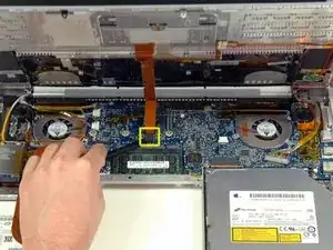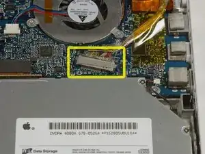 Используйте лопатку, чтобы повторно установить разъём шлейфа трекпада/клавиатуры в его гнездо на логической плате.