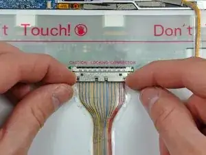 Подключите кабель передачи данных дисплея и разъём кабеля инвертора обратно в их соответствующие гнёзда на оригинальной сборке ЖК‑экрана.