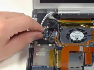 Выведите антенные кабели Airport из их канала в левом динамике.