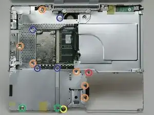 Удалите следующие 14 винтов (в некоторых моделях некоторые винты могут отсутствовать):