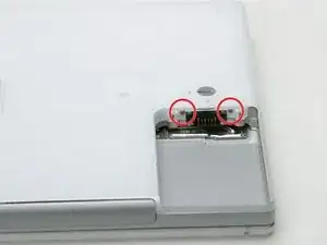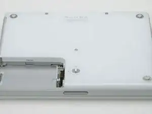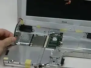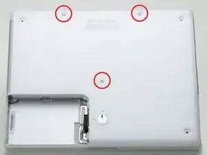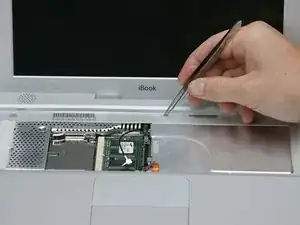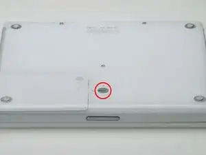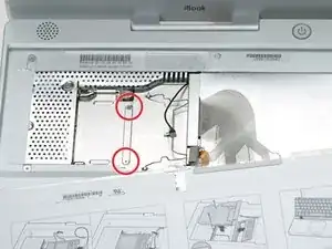 Один филипсовый винт 4,5 мм рядом с механизмом защёлки (этот винт может отсутствовать в iBook 800 МГц)