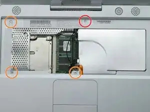 Снимите следующие 4 винта с нижней стороны компьютера: