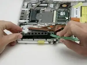 Отогните одну полоску фольгированной ленты в верхнем левом углу и ещё одну в месте подключения трекпада к материнской плате.