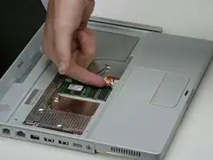 Снимите два филипсовых винта 2,5 мм, удерживающие экран оперативной памяти.