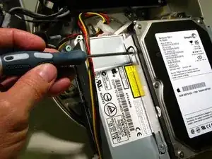 Удалите (4) винта Torx длиной 6 мм, которые крепят жёсткий диск к несущей рамке, с помощью отвёртки T10 Torx. По (2) винта расположены с каждой стороны.