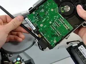 Поверните лопатку, чтобы разъединить разъём SATA данных и жёсткий диск, затем отсоедините его от жёсткого диска.