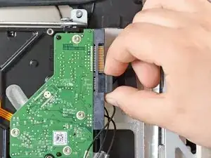 Отсоедините SATA-кабель питания и кабель данных от жёсткого диска, потянув их прямо от диска.
