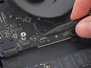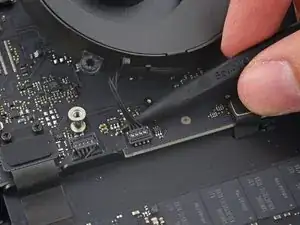 Используйте наконечник лопатки, чтобы отсоединить разъём кабеля ИК‑датчика, поддев его прямо вверх из гнезда.