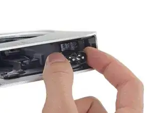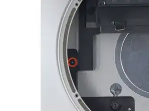 Удалите один винт T6 длиной 8 мм, крепящий лоток для диска.