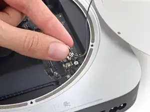 Аккуратно извлеките узел логической платы из Mac mini, следя за тем, чтобы никакие кабели не застряли.