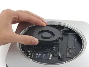 Снимите вентилятор с Mac mini.