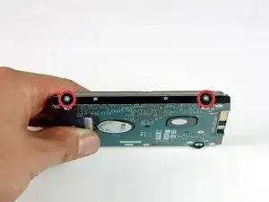 Поверните компьютер на 90 градусов и выкрутите два винта длиной 3,2 мм крестообразной отвёрткой с задней стороны компьютера.