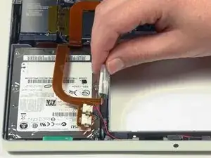 Отключите ленточный кабель трекпада и клавиатуры от логической платы, при необходимости удалив ленту.