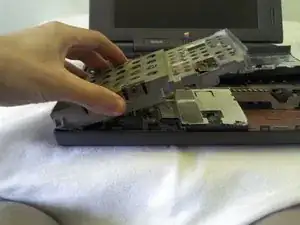 Отключите ленточный кабель, соединяющий клавиатуру с остальной частью компьютера.