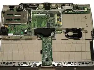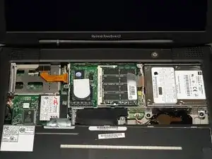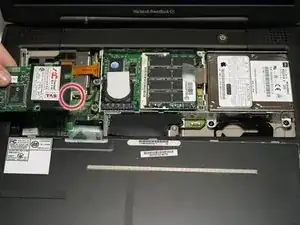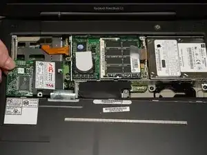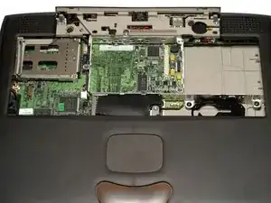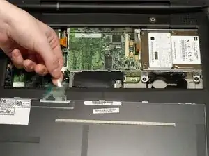 Отключите недавно обнаруженную тонкую оранжевую шлейфовую ленту от платы логики, слева от тачпада.