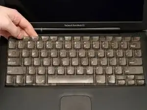 Выньте клавиатуру, потянув её вверх и от себя. Положите клавиатуру лицевой стороной вниз на тачпад.