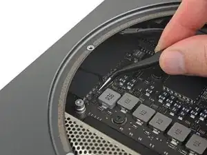 Используйте отвертку Torx T10, чтобы удалить два винта длиной 7,5 мм, закрепляющих логическую плату.