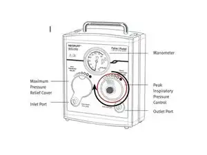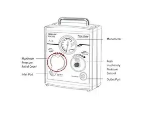 Закройте клапан пикового вдохновительного давления, полностью повернув ручку по часовой стрелке.